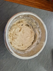 - V kozici dobro zmešamo moko in 200 ml vode.